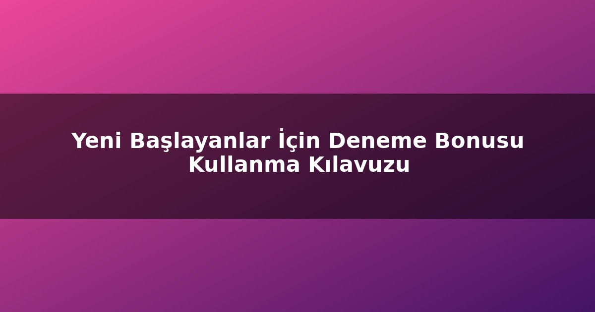 Yeni Başlayanlar İçin Deneme Bonusu Kullanma Kılavuzu
